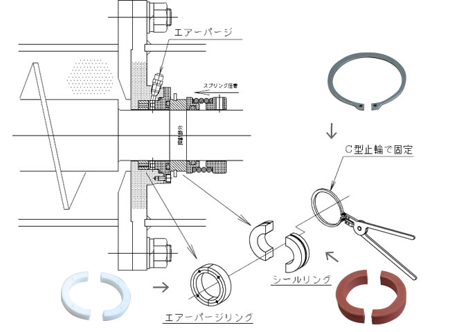 - シールリング材は二つ割でシャフトの取り外しが不要