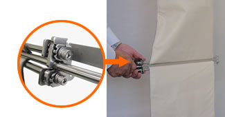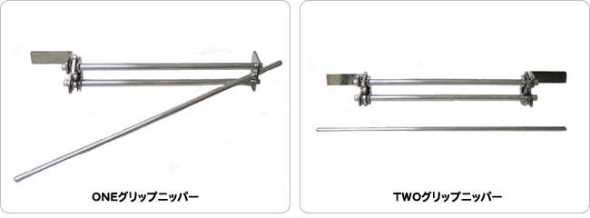 グリップニッパーは強力なグリップでフレキシブシュート、チューブ類をワンタッチ操作で確実にニップ(挟み込み)します。